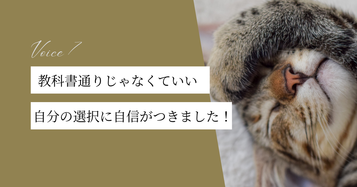 おうちケアの効果を感じる事もできて、自分の選択に自信もつきました。